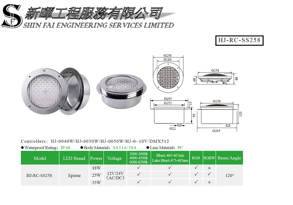 泳池燈 HJ-RC-SS110H-6W-6500K